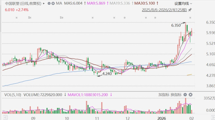 格隆汇2月4日|近期表现活跃的塑料管道龙头中国联塑(2128.HK)今日重拾升势,盘中逆势涨超4%,报6.11港元。